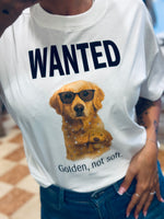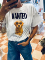 T shirt over in cotone con strass applicati e scritta in velluto