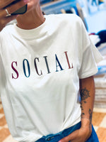T shirt over in cotone con scritta ricamata