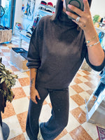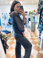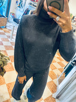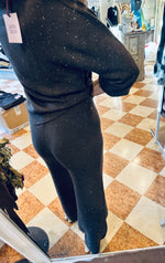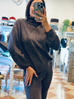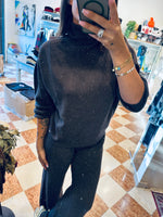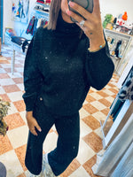 Tuta super morbida in viscosa con micropaillettes disponile in vari colori. Il pantalone scende morbido e ha elastico in vita