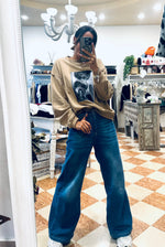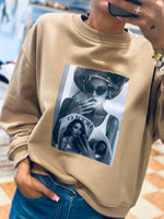 Felpa in cotone garzato con stampa vestibilità morbida