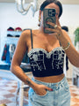 Bustino con spalline regolabili e strass applicate con chiusura a ganci sulla schiena